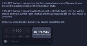For newcomers, access is straightforward. Registration with a licensed casino, a secure deposit, and a standard login complete the required setup. The interface is intuitive: clear stake boxes, balance indicators, and a “Bet” button that transforms into “Cashout” when the rocket launches. Minimalism removes distractions, keeping the spotlight on timing decisions and bankroll control.
